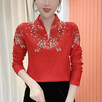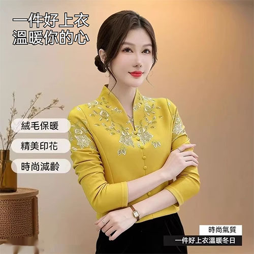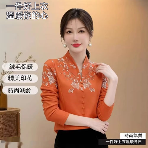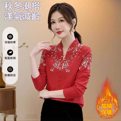 [1] 氣質V領印花加絨打底衫 冬季新款時尚百搭減齡顯瘦衫衣,1入組 NT$1198