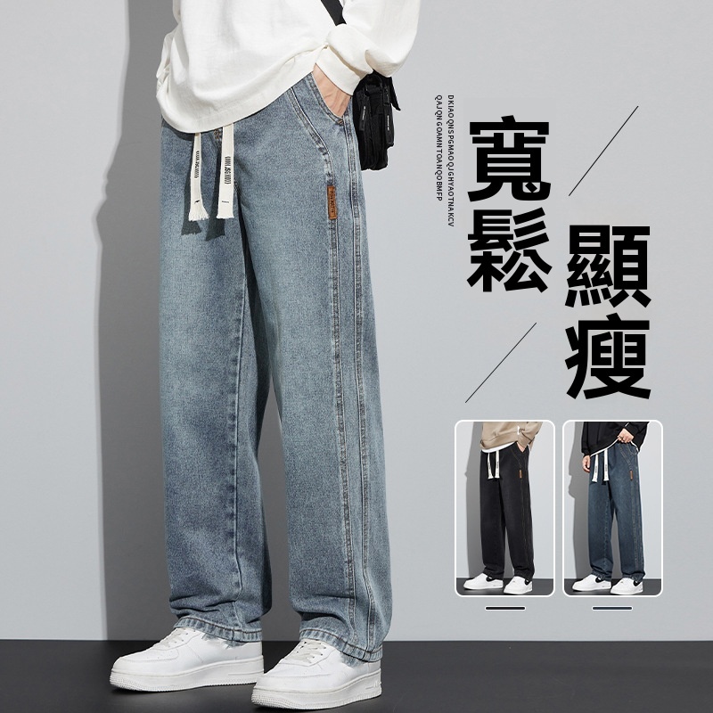 秋冬褲選它 寬鬆牛仔褲抽繩腰頭不勒 闊腿版型顯瘦藏肉 多色 搭衛衣颯 配毛衣雅 日常穿舒適又百搭